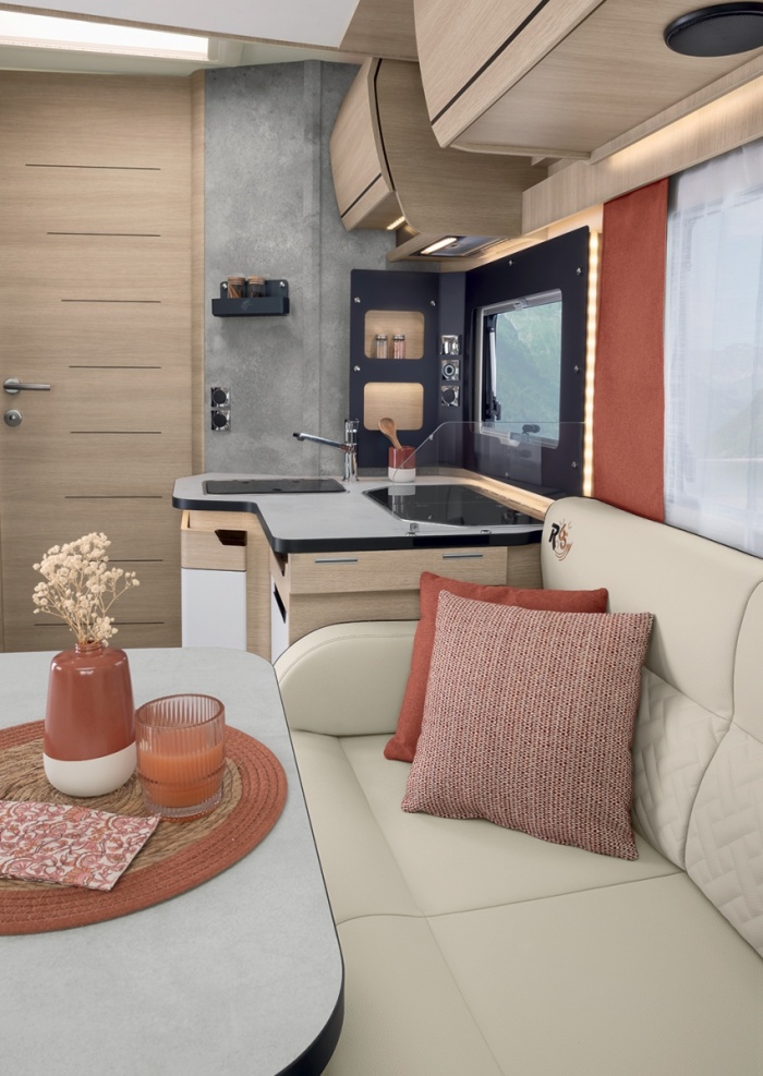 Des coussins assortis viennent souligner l’élégance de l’intérieur, véritable signature de l’art de vivre à la RAPIDO.