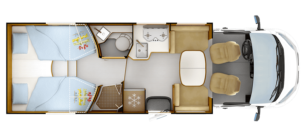 * 2+2 Avec option lit plafond **Places ceintures, pour nombre places carte grise voir guide technique. ***Truma Combi 4 CP PLUS