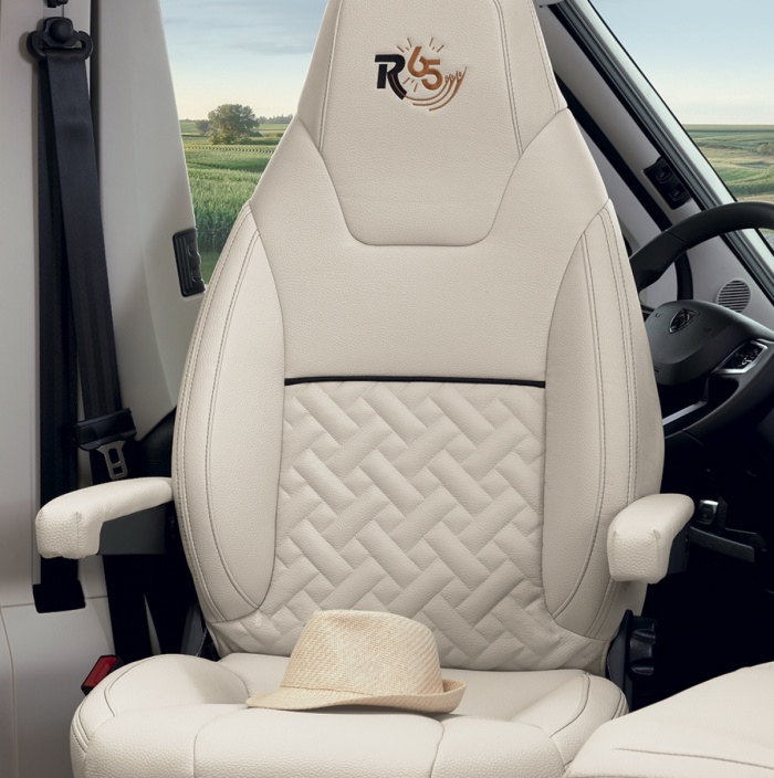 Ce modèle de fourgon profilé avec lit à la française bénéficie d’une implantation unique : une cuisine en L, une grande salle d’eau, une vaste penderie lingère et un spacieux salon.