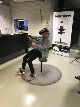 Après nous être “égaré” jusqu’au déjeuner, nous rejoignons notre premier rendez-vous de l’après-midi avec Cyberith ! Plus qu’un simple rendez-vous, ce sont des retrouvailles ! En effet, Holger, le CEO est venu dans la startup area il y a plusieurs années ! A l’époque, il avait conçu un prototype de dispositif permettant de marcher dans un espace de réalité virtuelle, grâce à un système de faible friction au sol.