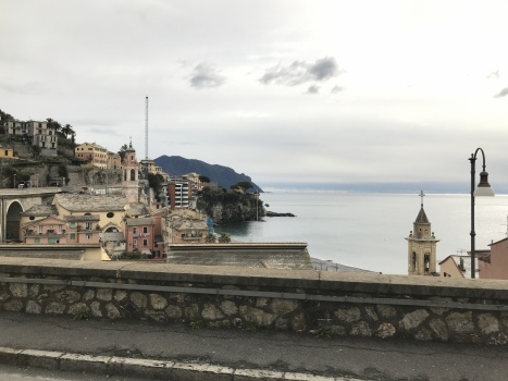 Nous avons rendez-vous à Pieve Ligure, une petite ville dans l’agglomération de Gênes. Nous arrivons une heure plus tôt, afin d’arriver plus tôt et de pouvoir admirer la vue ! Construite sur les falaises et surplombant la Méditerranée, c’est une ville sublime. Et heureusement d’ailleurs. Puisque nous tournons dans la ville depuis notre arrivée. Si nous avons trouvé notre lieu de rendez-vous, nous ne sommes pas capables de nous arrêter ou de trouver une place de parking. Les routes semblent plus faites pour les smart et les vespas que les camping-cars… Nous sommes trop larges ! Nous allons devoir reporter le rendez-vous pour le prochain tour en vélo…