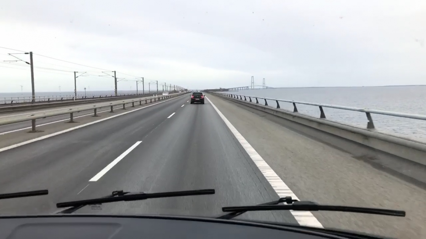 Nous sommes de retour dans le centre de Copenhague pour notre rendez-vous du matin avec Per de AWE, une startup s’intéressant au son 3D. Je suis fier de moi, hier soir j’ai trouvé un parking couvert juste à côté, accueillant les véhicules faisant jusqu’à 3.20m. Je suis confiant, j’ai même confirmé visuellement avec Google street view. Nous entrons sur le parking sereinement Le problème, parce que vous vous doutez bien qu’il y en a un, c’est qu’après la première barrière, une seconde limite l’accès aux véhicules de 2m10. C’est …. Pratique. Je pense que Gauthier n’a que moyennement apprécié la logique Danoise. Au moins, nous avons été chanceux de retrouver une place à l’extérieur suffisamment vite pour être à l’heure à notre premier rendez-vous. Nous enchainons les rendez-vous à une vitesse folle. Nous devons être à Malmö cette après-midi et nous sommes vraiment excités à l’idée de traverser le pont entre le Danemark et la Suède. Le soleil se couche, et nous pouvons le voir sur le pont. C’est sublime. Mais également un peu frustrant parce qu’il fait nuit avant 17h. Nous expérimentons notre premier contrôle de police à la frontière ! J’espère que personne ne ramène de « souvenirs » d’Amsterdam…