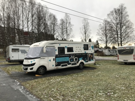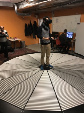 Nous arrivons finalement à Växjö. Nous rencontrons Peter Thor, le responsable technique, et Richard Guilfoyle, responsable des ventes d’Omnifinty. Tous deux travaillent pour Omnifinity, société Suédoise ayant conçu l’Omnideck. C’est une sorte de tapis de course circulaire géant, composés d’une centaine de cylindres sur lesquels l’utilisateur marche. L’idée est d’être capable de marcher dans l’expérience virtuelle, au rythme de ses propres jambes dans l’espace réel.
