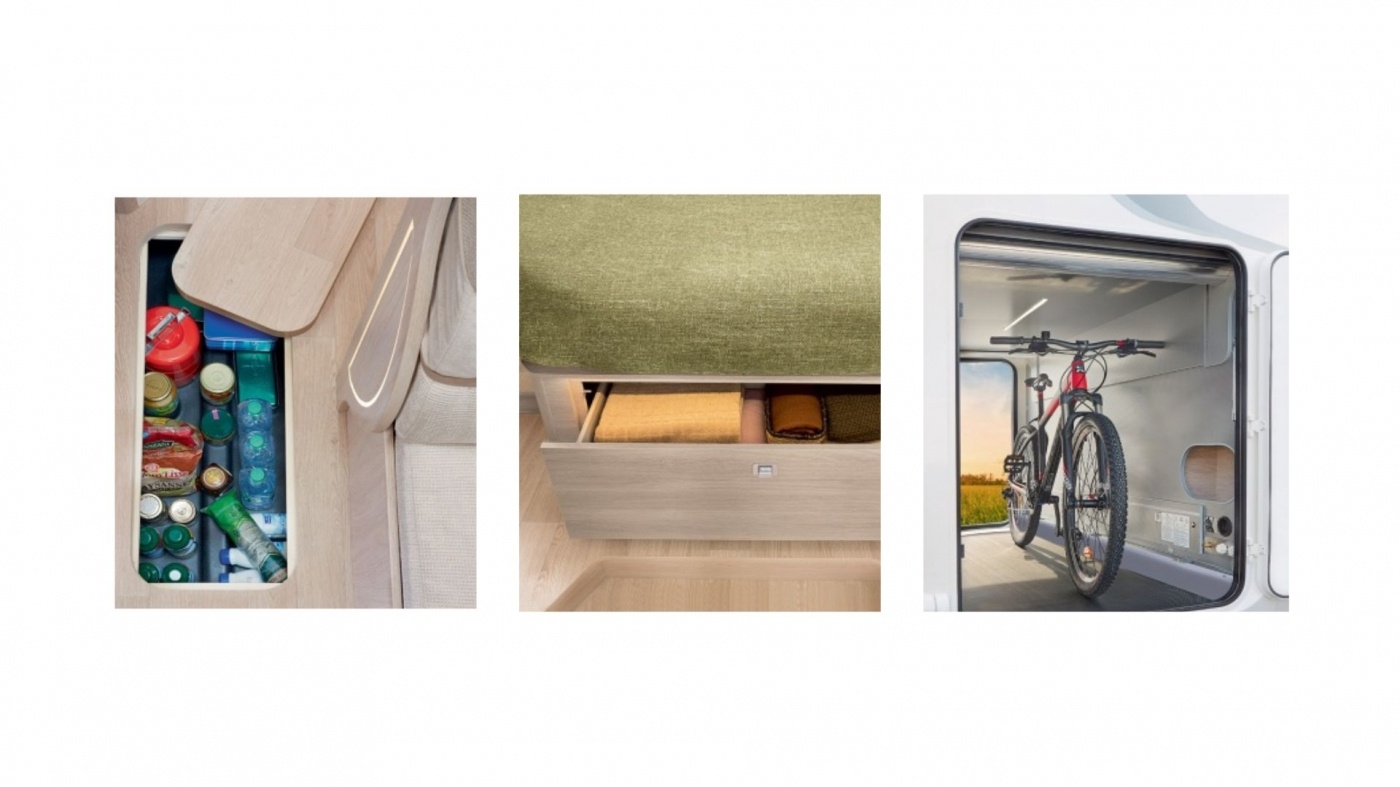Soutes optimisées : Profitez d'un rangement optimal avec des soutes chauffées munies de revêtement protecteur et crochets d’arrimage pour stocker vos équipements et accessoires de camping.